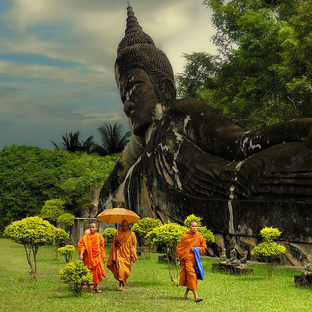 by Bâ®n on Flickr.Buddhist monks in Xieng Khuan park located 25 km southeast from Vientiane, Laos.